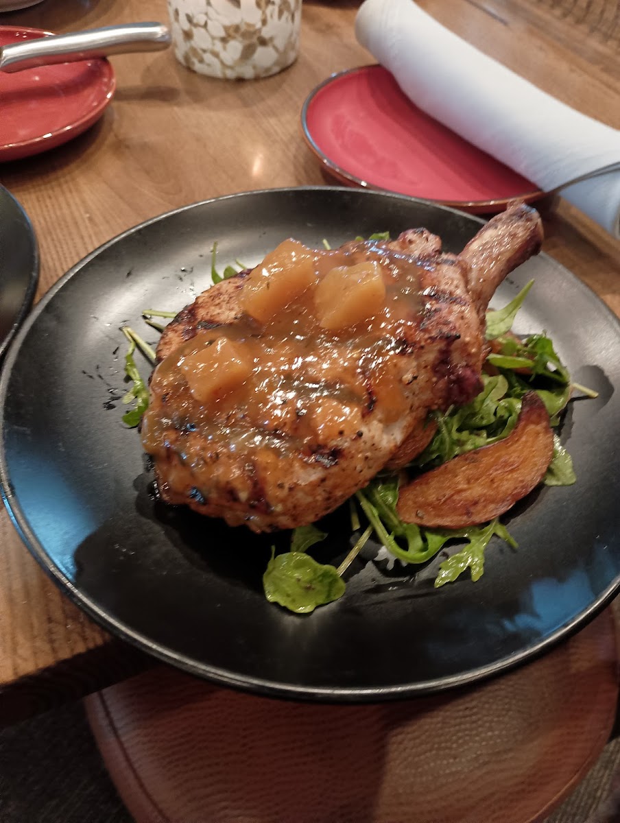 Food was great. The service was wonderful. Our server was really attentive. The bread before the meal was warm and crispy with butter. We went for Christmas Eve so the menu was limited, but great options. We got sea bass, chicken, pork chop, salmon and ribs. They were all loved by our guests. The brussel sprout appetizer was to diet for. The flourless chocolate cake was awesome and the burbon soaked bread pudding.
