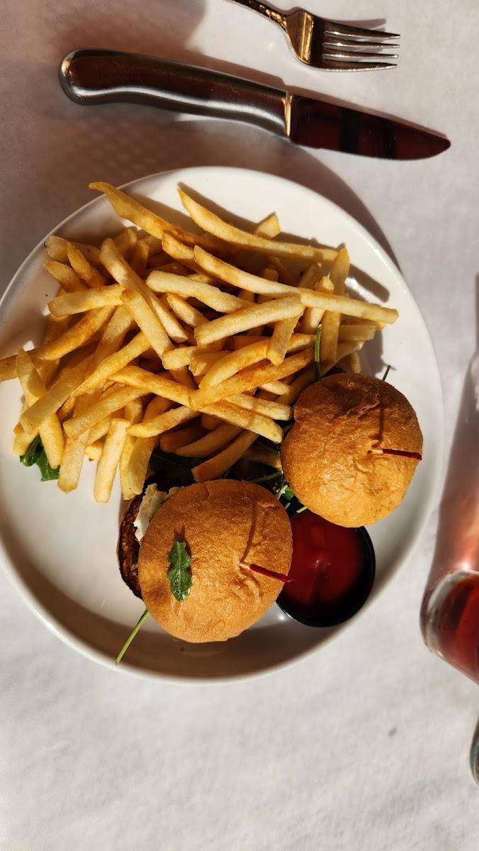 First time having dinner here, Very nice atmosphere although the time of the evening 6pm, sitting indoors, the sun is in your face at some tables, so sit with your back to the windows, although you can still get the reflection in your eyes from the pictures on the wall. It was a bit annoying. Our meals were very good, we only had 1 issue with the filet being undercooked and having it sent back, but it was still undercooked when brought back? They should be able to cook a filet Medium the first time! The Seafood Risotto was excellent. The waitress may have been busy, after food arrived she didn't come to check or get another round of drinks until we flagged her down to refire the filet. She was very nice and friendly. Overall it was a good meal, We will go again.