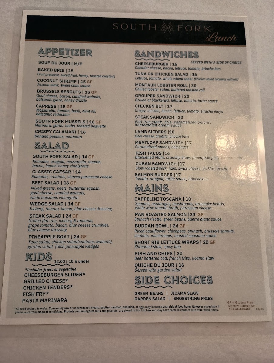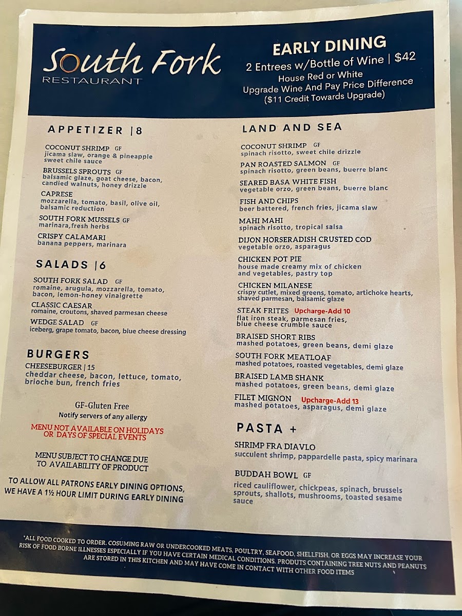 Overall, South Fork Grille’s menu reflects a comfortable dining experience where thoughtfully prepared American fare and drinks come together without fuss, matching the restaurant’s friendly and approachable setting.