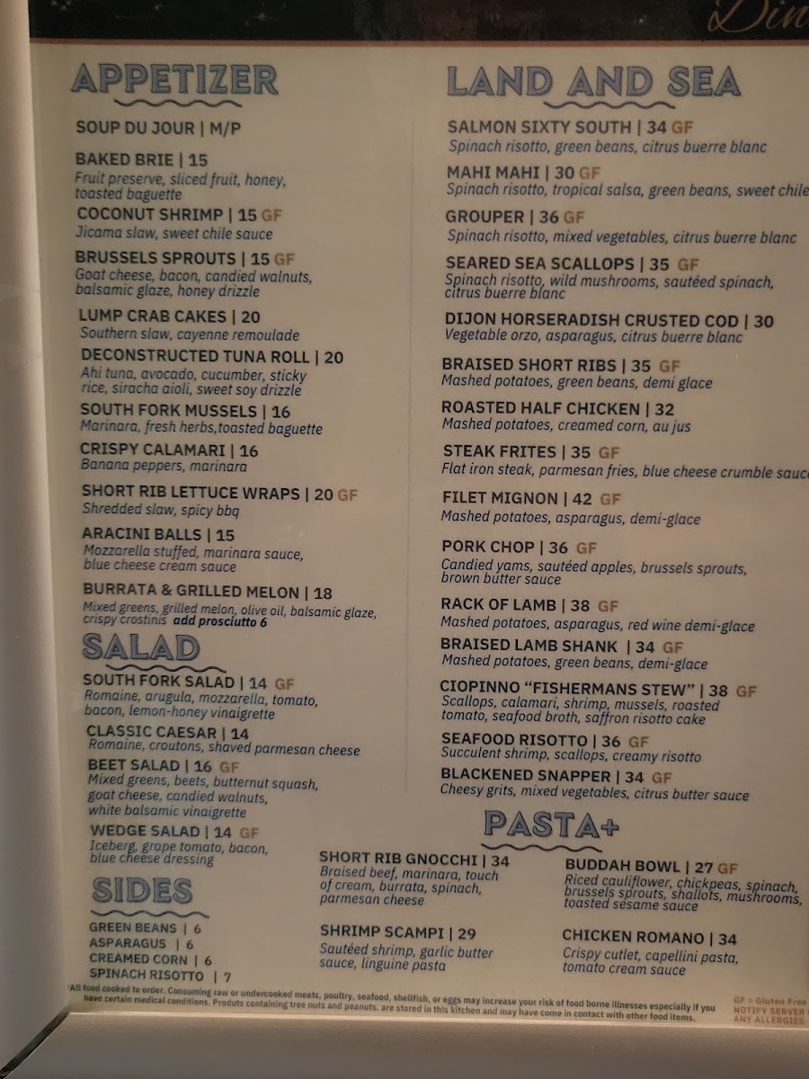 The menu at South Fork Grille offers a balanced selection of traditional American classics alongside thoughtful, fresh twists. It leans toward comforting dishes with a polished presentation, inviting guests to enjoy casual lunches, relaxed dinners, or weekend brunches in a welcoming environment.